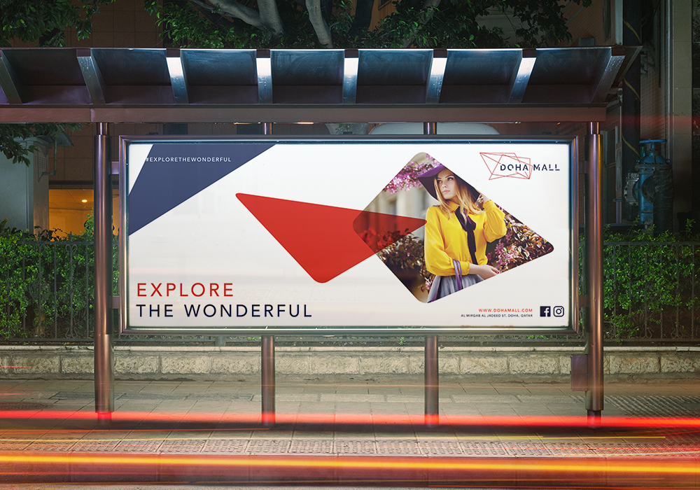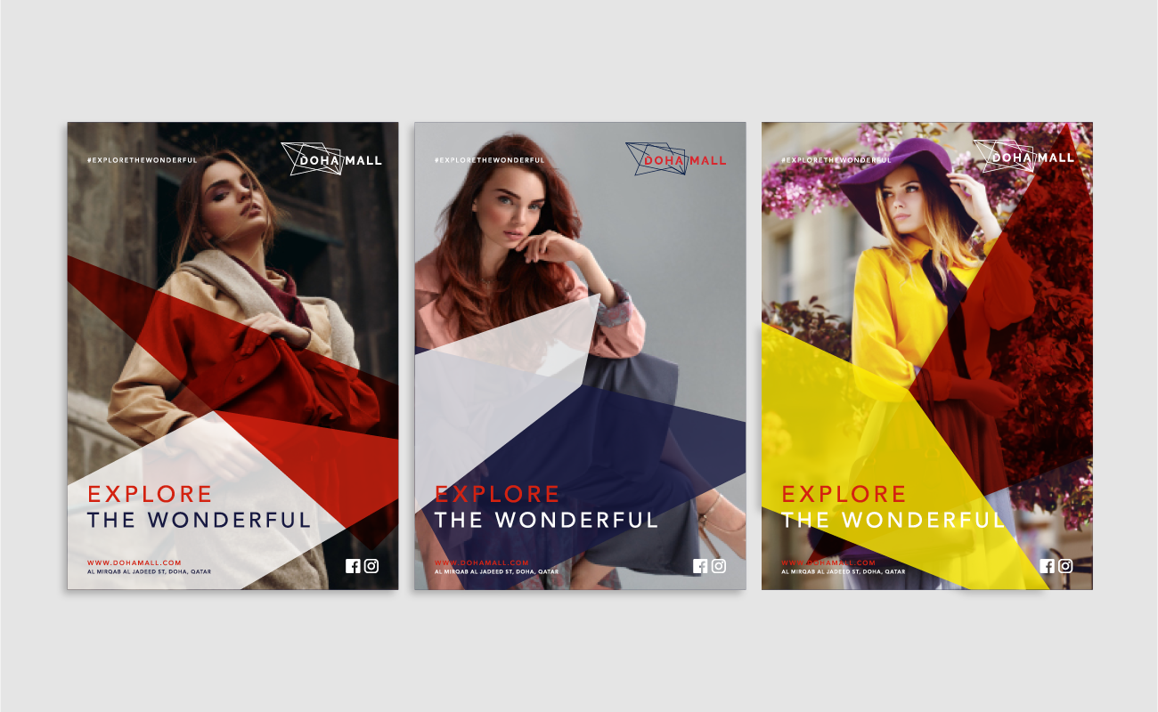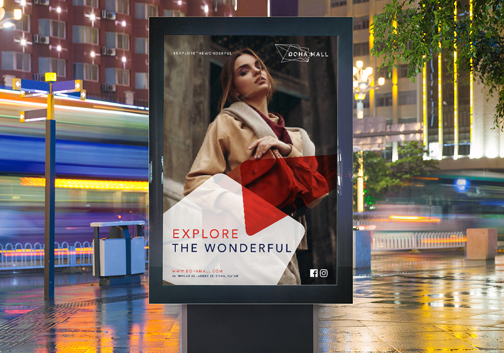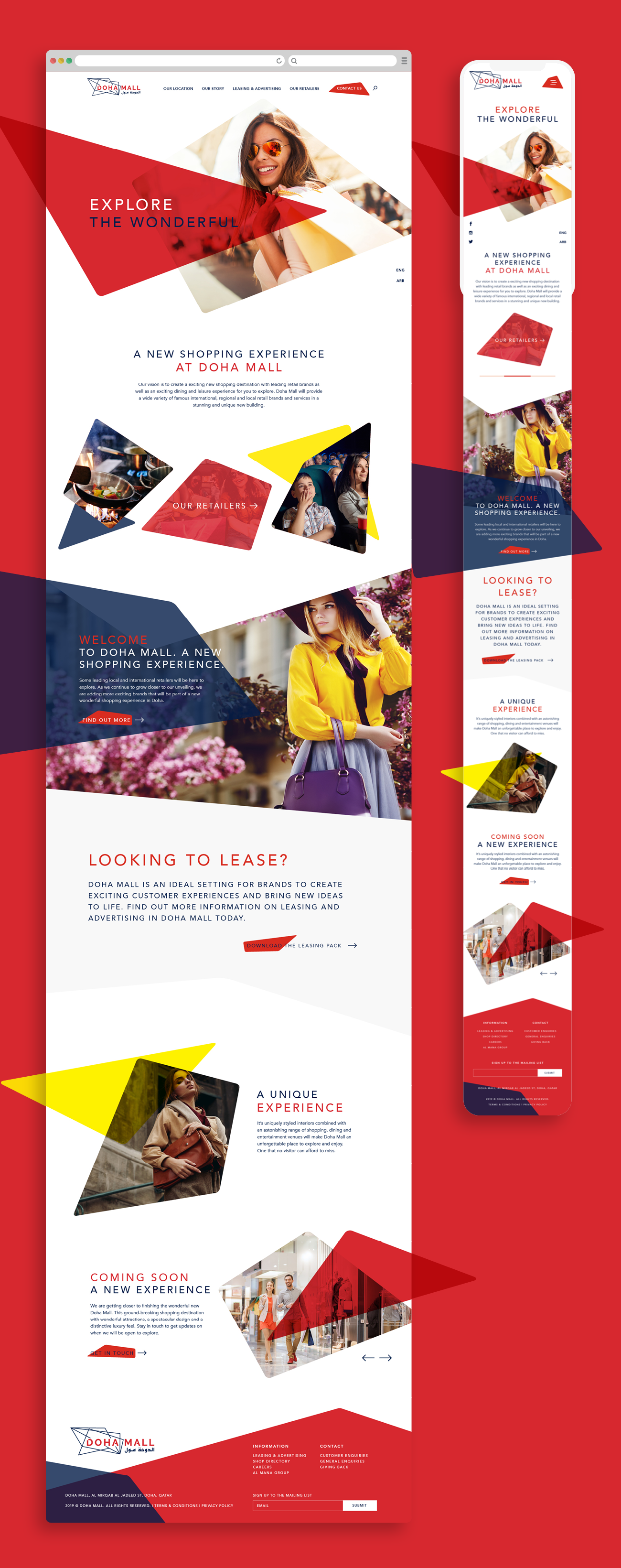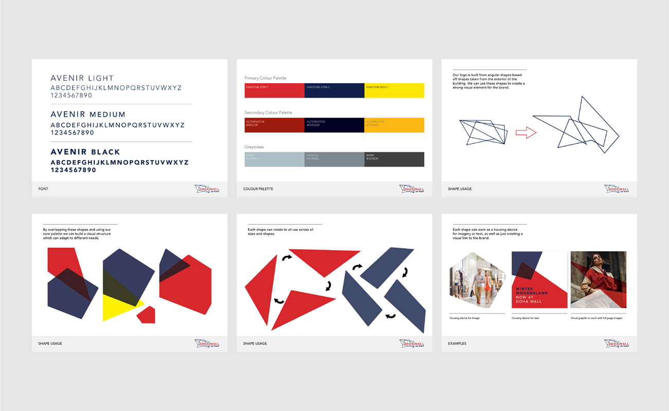 Doha Mall is located in the city of Doha in Qatar. The mall will be the only super regional mall in the South of Doha with over 650,000 people within its catchment area. Doha Mall has a unique architectural design, sharp angles and cascading waterfalls around the entrance and will also boast an Aquarium to wow visitors. While working at izest, we used these architectural features to create a brand identity to align with the overall aesthetic, creating a visual style full of movement and engaging shapes to allow for an ever moving brand that can adapt to any medium. I worked on brand development, print, digital, signage as well as designing the website.