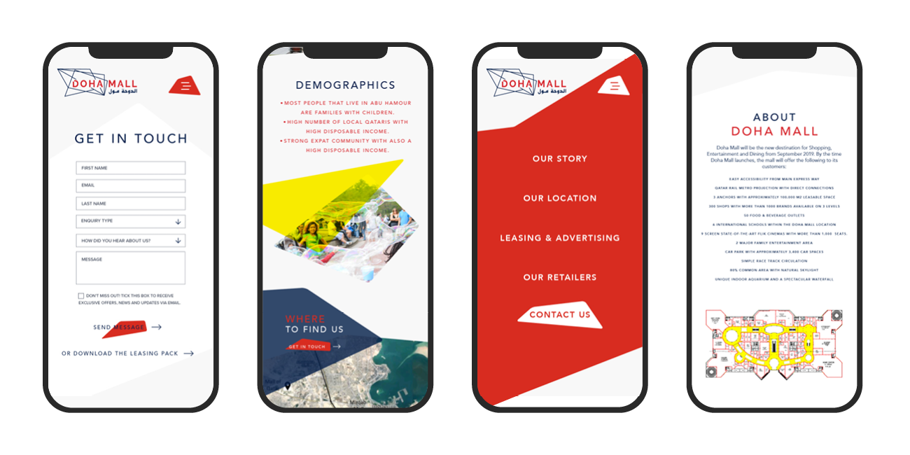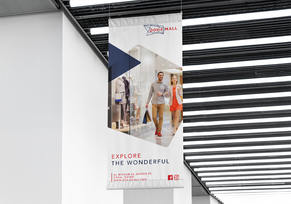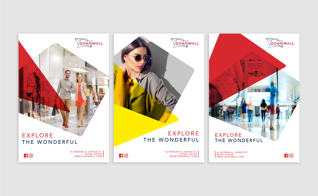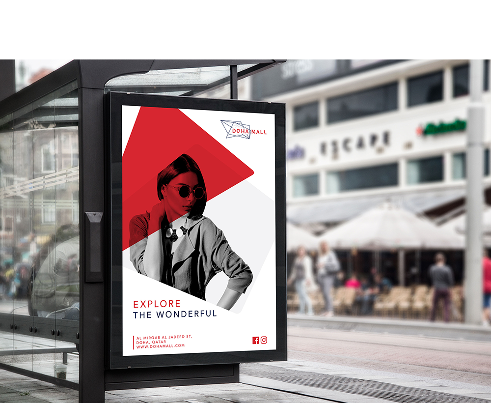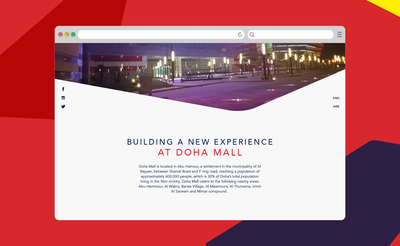 Doha Mall is located in the city of Doha in Qatar. The mall will be the only super regional mall in the South of Doha with over 650,000 people within its catchment area. Doha Mall has a unique architectural design, sharp angles and cascading waterfalls around the entrance and will also boast an Aquarium to wow visitors. While working at izest, we used these architectural features to create a brand identity to align with the overall aesthetic, creating a visual style full of movement and engaging shapes to allow for an ever moving brand that can adapt to any medium. I worked on brand development, print, digital, signage as well as designing the website.