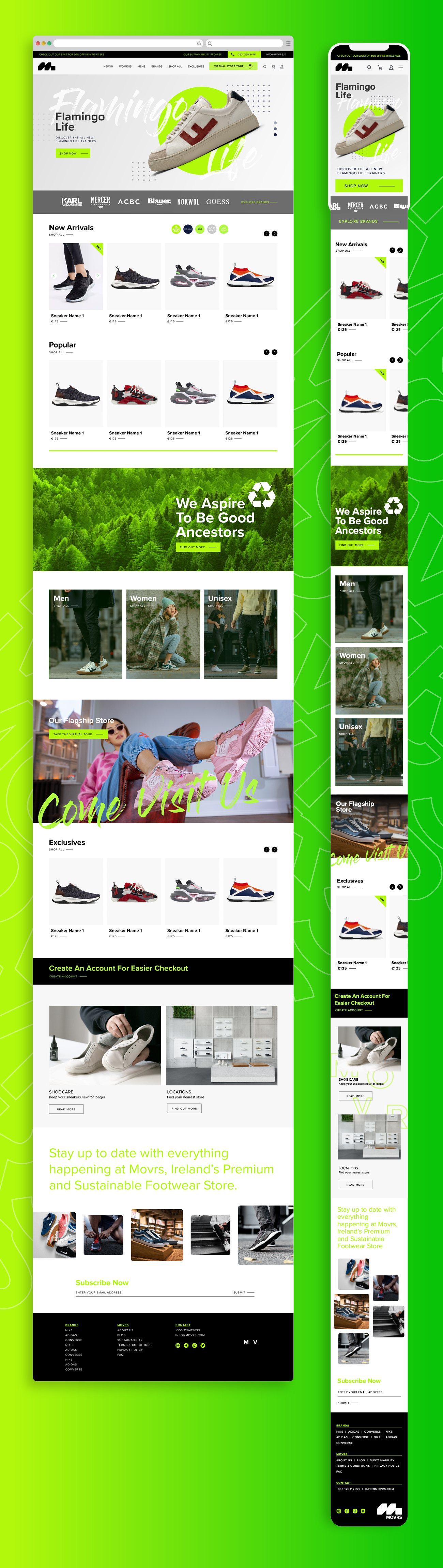 A new sustainable footwear brand launched in Dublin, I was involved in all stages of the design for this brand while working at izest marketing. This involved the initial brand development and visual language, expanded the aesthetic across all channels. Working on Packaging, Art Direction, Signage, Print, Digital and all other aspects of the design process. As well as this I worked closely with the clients to create an engaging e-commerce user interface as the primary selling platform for the brand.