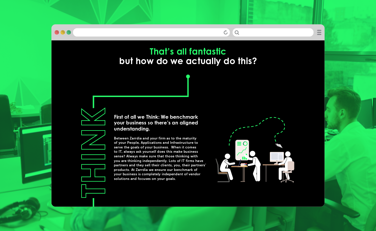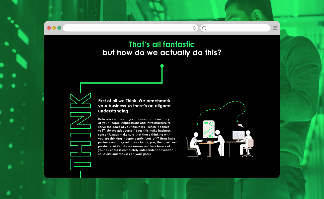 Zarrdia is a specialist Infrastructure & Cloud firm, focusing on Advisory, Systems Integration and Managed Services. I worked on a new user interface for the client by framing their brand offering in a unique, modern aesthetic that fit with their goals to stand out from their competitors. Using bold colours and an engaging layout to increase the audience interaction with all elements of the site.